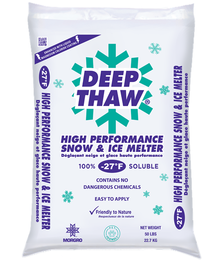 USE PRECAUTIONS: DEEP THAW™ Snow and Ice Melter will not chemically harm concrete. As with all ice melting products, it will increase the number of freeze-thaw cycles, the major cause of surface damage. A combination of factors such as quality, mixing, finishing, curing and porosity of the concrete will affect its durability. Individual situations differ. The user must determine the suitability before application. Applications of DEEP THAW™ followed by quick removal of snow and ice, will lessen the possibility of damage. DO NOT USE ON CONCRETE THAT IS CURED LESS THAN ONE YEAR.